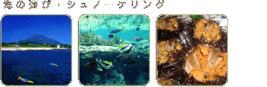 海水浴場ではシュノーケリングでサンゴ、熱帯魚、海ガメなども見られ、またウニやタコなども豊富です。